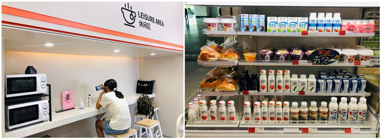 店(diàn)內(nèi)還(hái)提供面包和(hé)即食食品區(qū)域,同時(shí)×←≤還(hái)提供加熱(rè)微(wēi)波爐的(de)就(jiù)餐區(qū),讓顧客在快(k↓♦ uài)捷的(de)旅途生(shēng)活也(yě)能(néng)感到(dào)便捷。